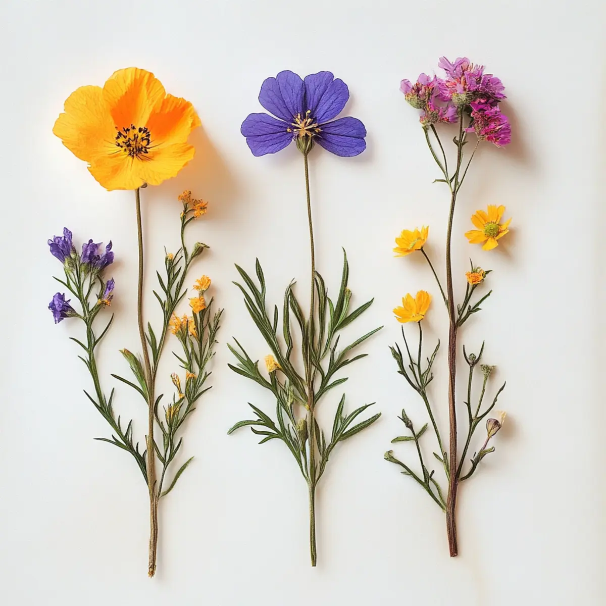 - Position your pressed flowers on a clear surface and use adhesive to secure them if desired.