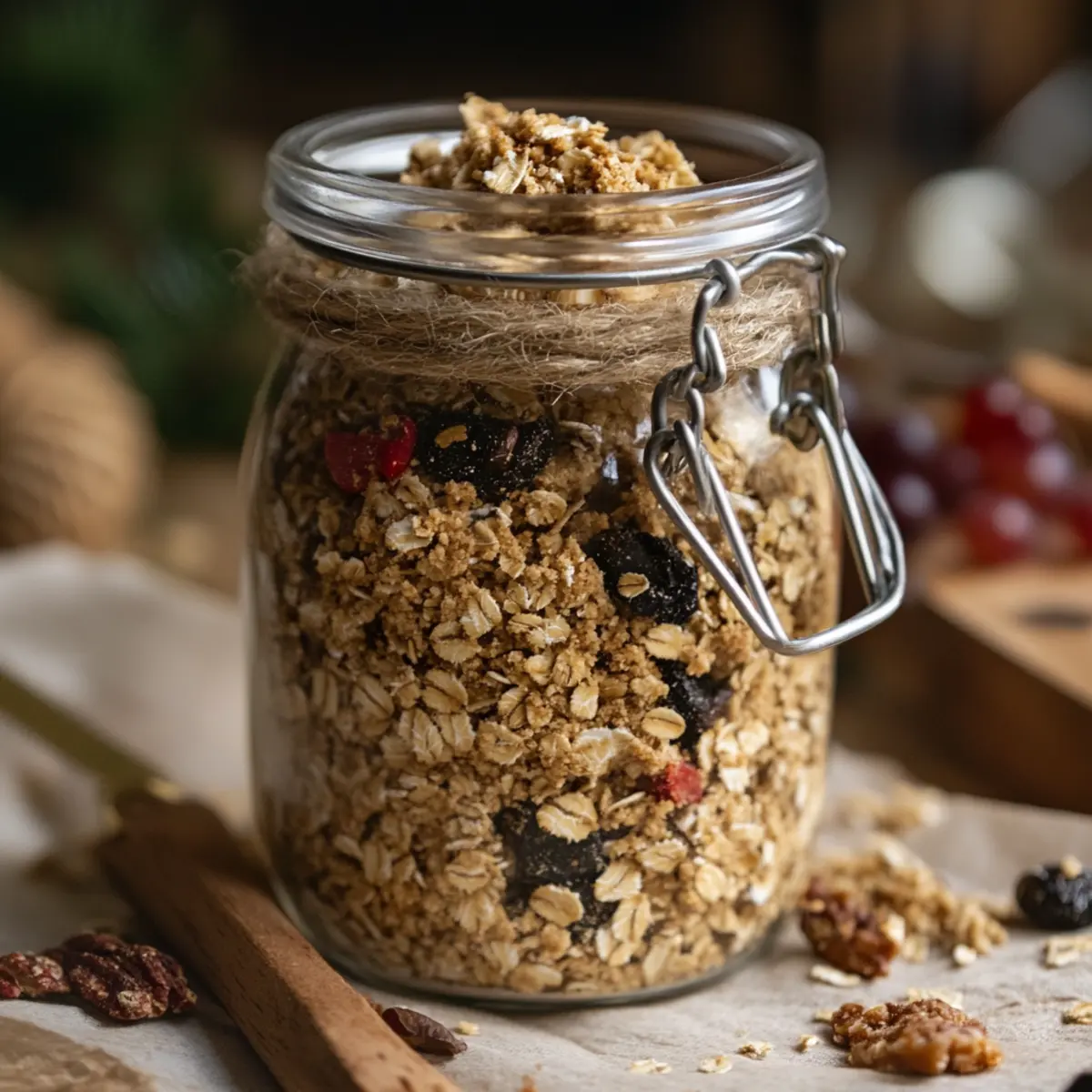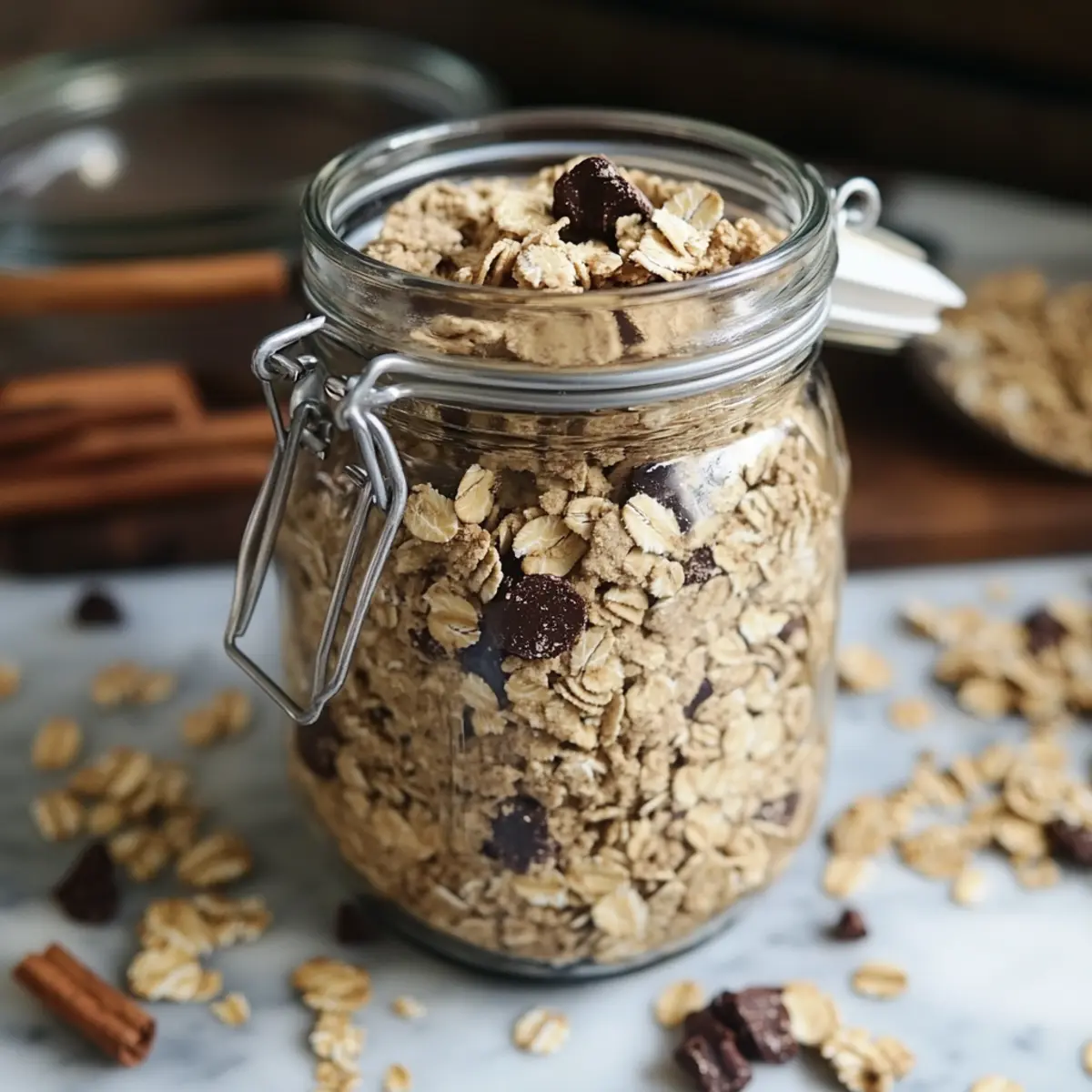 • Optional mix-ins – Chocolate chips, nuts, or dried fruit for flavor variety and added texture; perfect for customizing your Oatmeal Cookie Jar Mix!